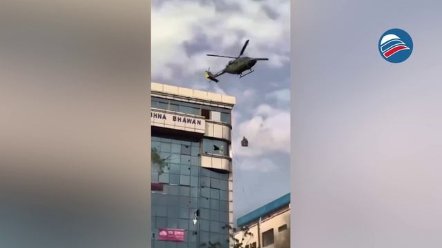 Уникальные кадры: министры Непала спасаются на веревках с вертолетов