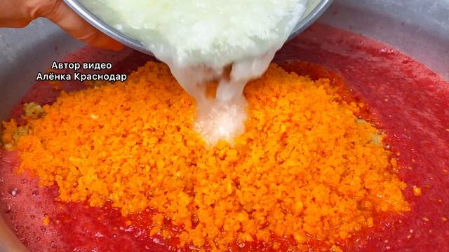Аджика рецепт. Заготовка на зиму Сколько в мире хозяюшек, столько и рецептов ?и все они разные и каждый готовит как ему нравится ❤️ Ну а я с вами поделюсь рецептом, который меня покорил ?????? Не обязательно тратить много времени и денег чтобы готовить вкусно. Мира Вам и Любви❤️ ?ИНГРЕДИЕНТЫ: ⠀ Помидоры - 5 кг Перец болгарский - 1 кг Яблоки - 1 кг Морковь - 1 кг Лук - 1 кг Чеснок - 300 г Перец острый - 2 шт Соль - 4 ст.л. Сахар - 150 г Растительное масло - 200 мл (1 стакан) Овощи перекрутить на мясорубке и варить 2 часа периодически помешивая. За 30 минут до готовности добавляем: соль, сахар, чеснок, острый перец и вливаем растительное масло. Разливаем аджику в стерилизованные банки и закатываем. Далее банки переворачиваем и накрываем тёплым одеялом до полного остывания. Чтобы не пропускать новые видео, обязательно ПОДПИШИТЕСЬ. Спасибо за лайки ??? #рецепт #готовимдома #рецепты #готовимвкусно #аджикарецепт #аджиканазиму #аджика