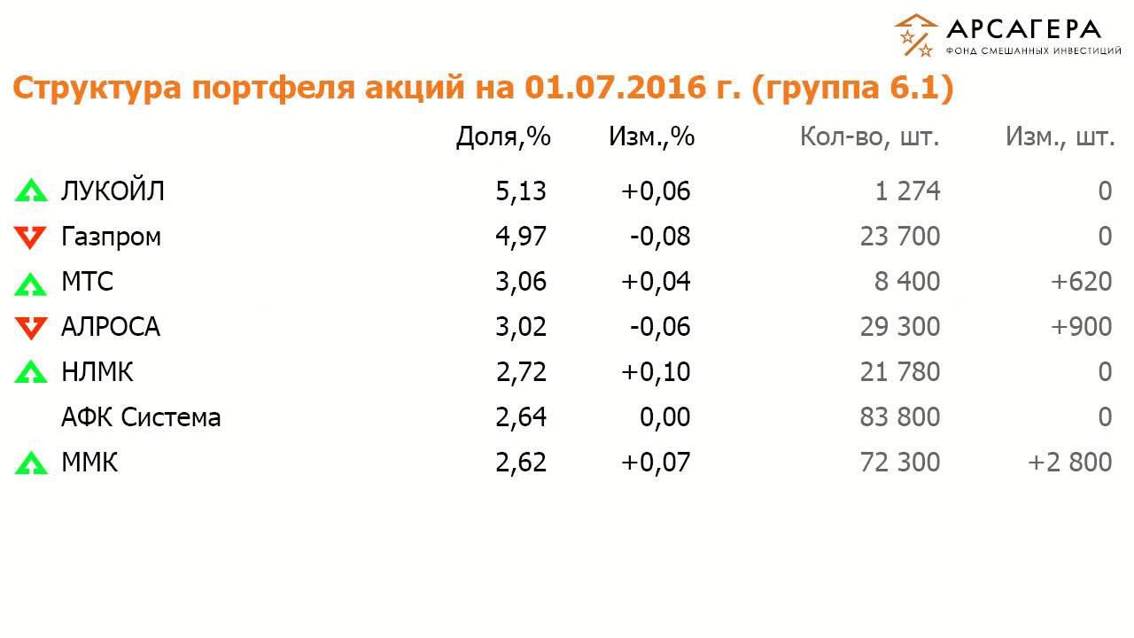 Видеопередача об операциях с активами фонда Арсагера - фонд смешанных инвестиций за период с 17.06.16 по 01.07.16