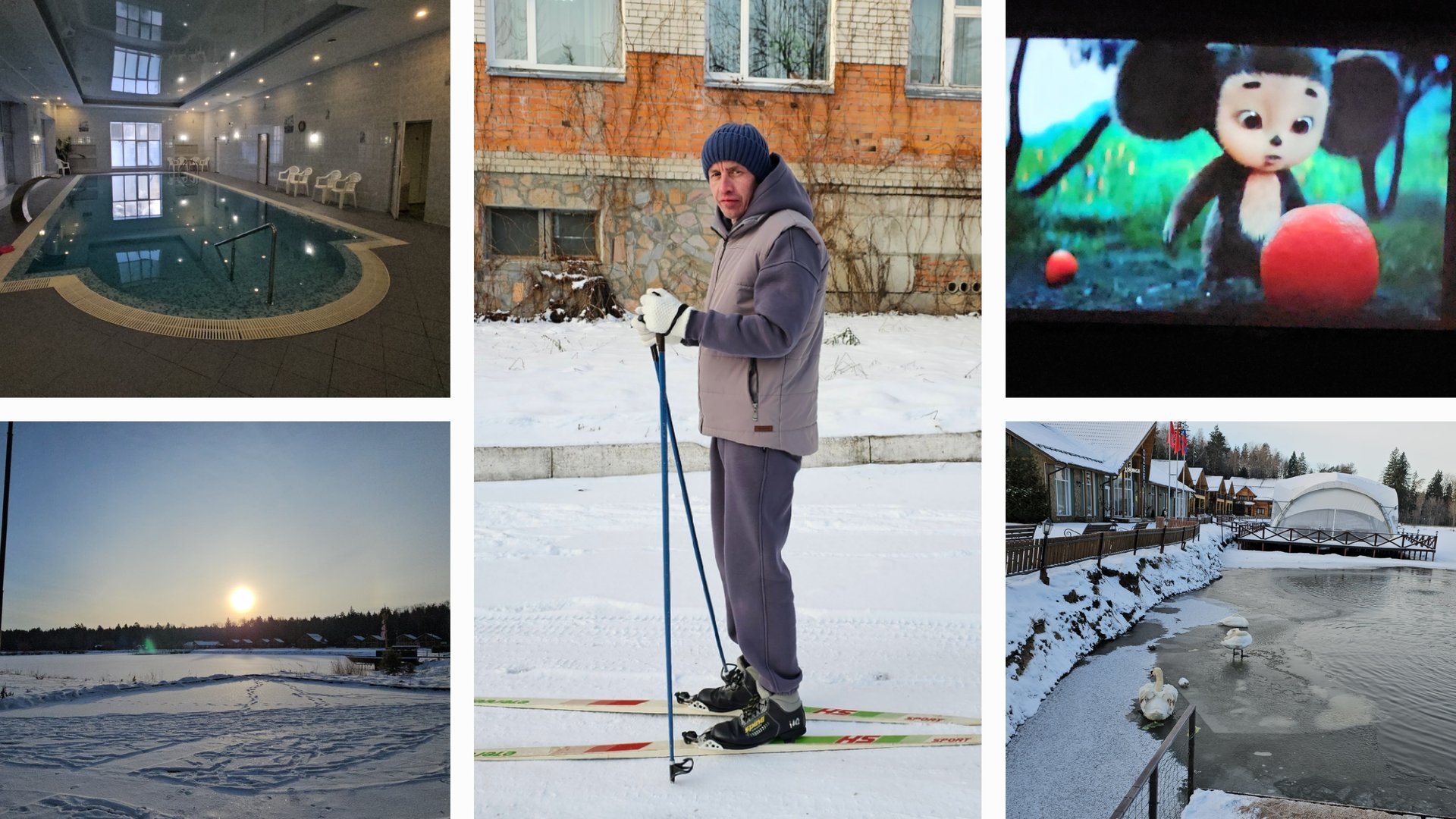 Видео 06.01.2025 г Ателика Снежка/ Бассейн/ Прогулка к озеру/ Лыжи/ Чебурашка/ День 2 часть 1