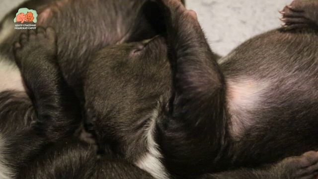 Вы не раз отмечали в своих комментариях, какие у этих крошечных существ большие коготки. Давайте разберемся, для чего природой так задумано? Медвежата рождаются в середине зимы, когда стоят морозы. Их «роддом», то есть берлога, не оборудован системой обогрева. А в таком малом возрасте для медвежьего потомства жизненно важно тепло. И единственная для них возможность не замерзнуть – получать тепло от мамы-медведицы, прячась между кормлениями в ее подмышечных и паховой впадинах, где, благодаря редкой шерсти и тонкой жировой прослойке, очень тепло. А как медвежатам удержаться, чтобы не скатиться на холодный пол берлоги? Именно для этого и нужны такие цепкие коготки – новорожденный малыш, едва обсохнув, уже может крепко цепляться за шерсть медведицы, чтобы не упасть. Чтобы нашим медвежатам было тепло, мы в помещении, где они содержатся, поддерживаем температуру на постоянном уровне. Когда медвежата совсем крохи, мы подкладываем им электрические коврики с подогревом, и они чувствуют себя комфортно. По мере роста медвежат, температура в помещении будет постепенно понемногу понижаться, и к моменту перевода медвежьего народа в лесные вольеры, она будет схожей с уличной. Центр спасения медвежат-сирот: orphan-bear.org