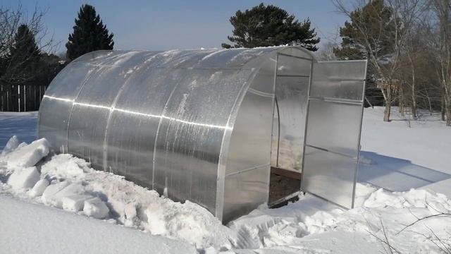Скидывайте вовремя снег с теплицы иначе сломает покрытие.