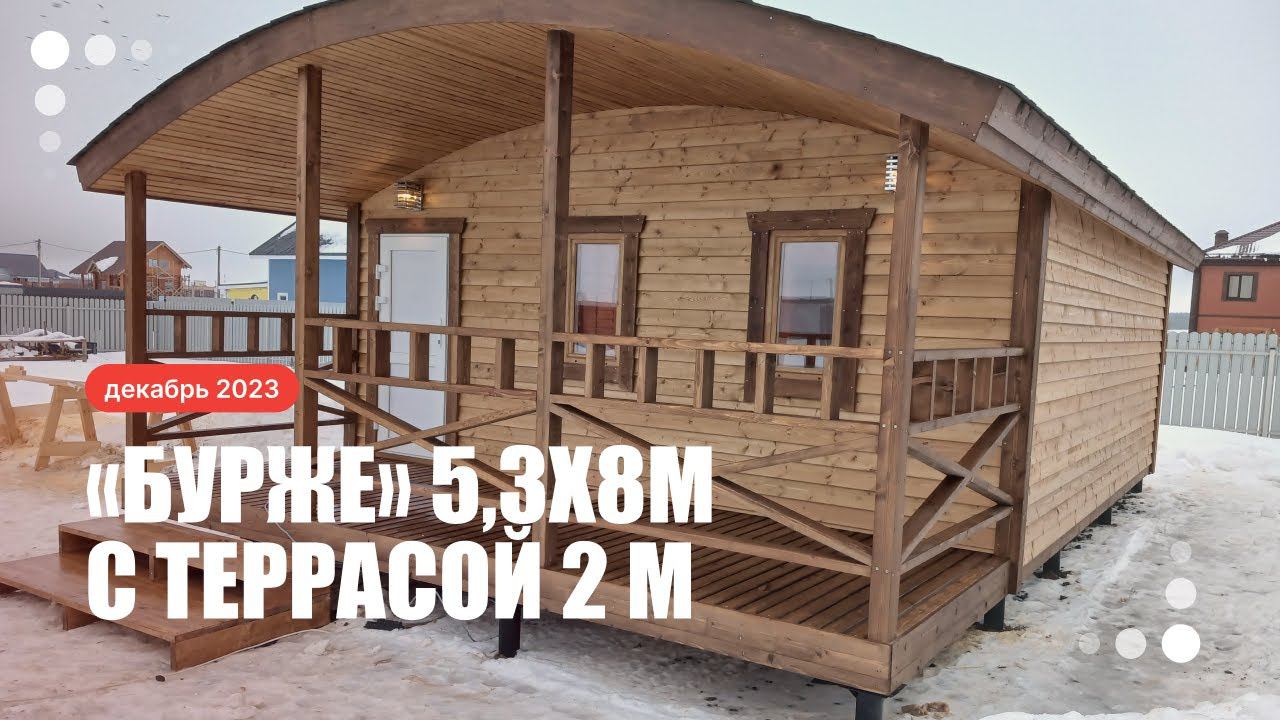 Завершили строительство каркасной бани «Бурже» – и она получилась впечатляющей! Она огромная: 5,3 на 8 метров. При этом терраса примерно 10 кв.м – пара шезлонгов и столик так и просятся сюда. Шикарный вариант!