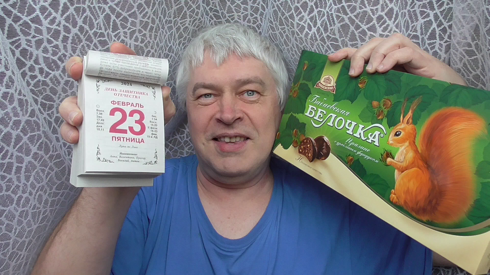 Сегодня праздник 23 февраля. Я кушаю конфеты белочка