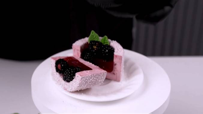 автор: Марина Невская автор:https://t.me/nebesnyii_mindal_official слово автора: ЗЕФИР ЕЖЕВИКА ЛИМОН В дежу миксера: 70 гр белка (или 10 гр альбумина и 70 гр воды) 70 гр сахара + 0.5 ч.л. лимонной кислоты В сотейник: 150 гр пюре ежевики 120 гр воды 10 гр агар-агара 300 гр сахара Дополнительно: Цедра одного лимона Кокосовая стружка для обсыпки Сок любой 100-150 гр 1. Ежевику пробейте блендером и протрите через сито, переложите в сотейник. 2.Так же в сотейник добавьте сахар, агар-агар, воду и начните варить сироп. Не забывайте хорошо мешать. 3. Параллельно поставьте взбивать белок с сахаром и лимонной кислотой. 4. Сварите сироп до 105 градусов, примерно 5-7 минут не больше на среднем огне 5. Хорошо взбейте белок до стойких пиков. 6. Готовый сироп аккуратно влейте во взбитый белок на средней скорости миксера. Увеличьте скорость и взбивайте до загустения и появления рельефов. Остановите миксер.Добавьте цедру. Перемешайте лопаткой. 7. Переложите массу в кондитерский мешок и заполните форму.Через 15 минут срежьте все неровности и оставьте еще на 40-60 минут на столе. 8. Затем аккуратно вытащите из форм и обваляйте в кокосовой стружке 9. В сотейник с остатками сиропа залейте 100-150 гр любого сока и доведите до кипения. Затем немного остудите и залейте в серединку формы. Дайте застыть, можно в холодильнике 10. Украсьте ягодами и листиками например мяты или из шоколада или мастики 11. Срок хранения до 7 дней ( без ягод, при комнатной температуре в пищевом контейнере, ягодами украшайте перед подачей)