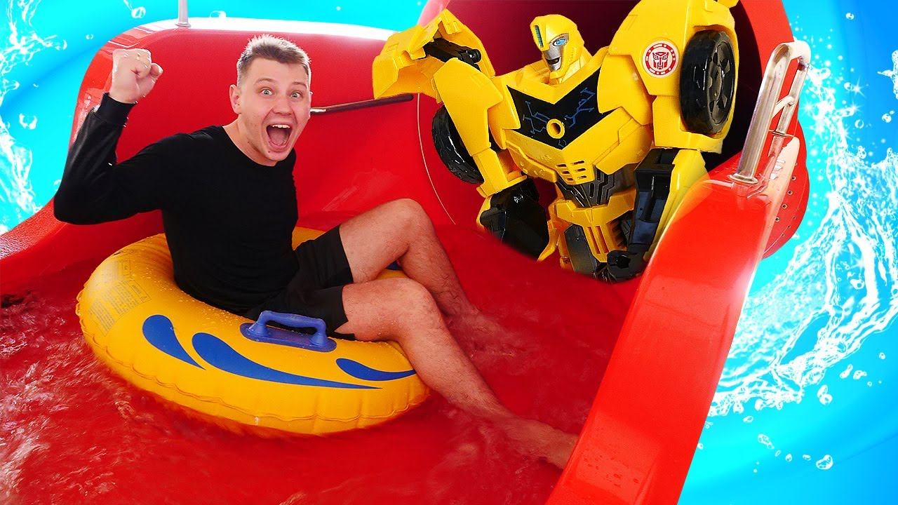 Роботы Трансформеры - Супер Тренировка БАМБЛБИ в АКВАПАРКЕ! – Смешное видео шоу с Супергероями.