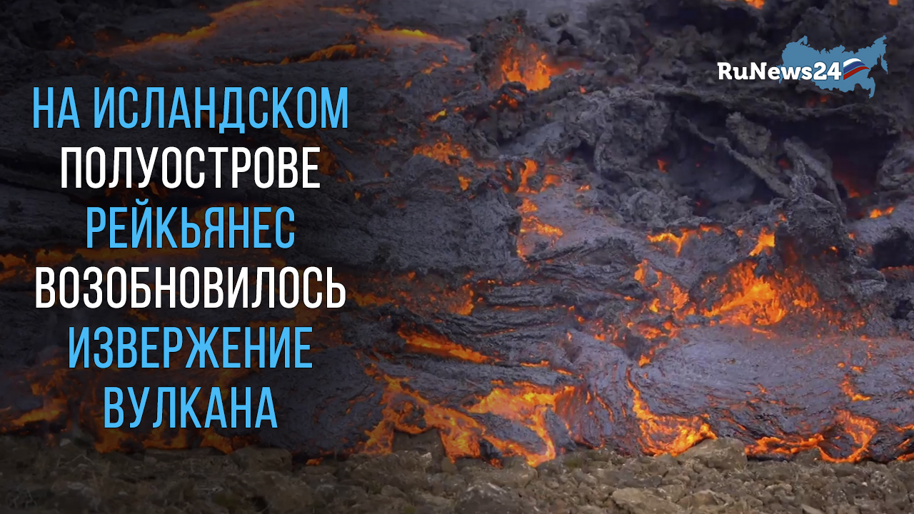 На исландском полуострове Рейкьянес возобновилось извержение