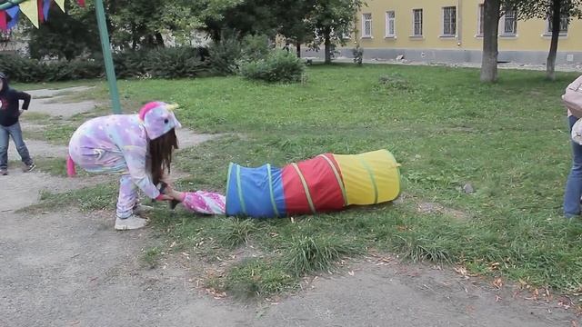 Сотрудники библиотеки им. П. П. Бажова провели во дворе у библиотеки детский праздник "До свидания, лето".