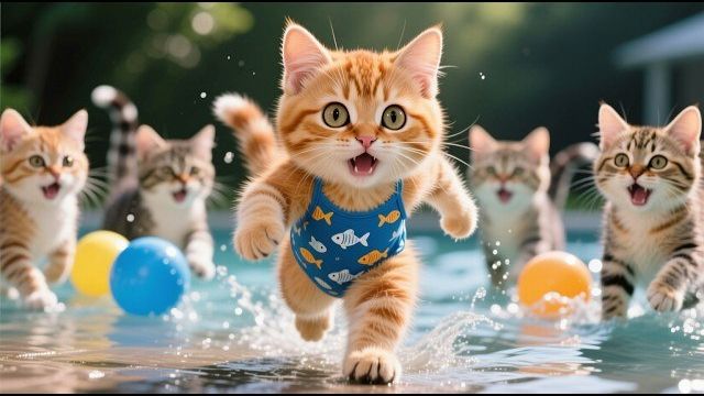 Рыжий котенок отправляется в аквапарк с мамой-кошкой