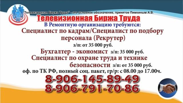 Вакансии и телефоны прямых работодателей в специализированной программе по трудоустройству "Телевизионная Биржа Труда" - г.Ульяновск