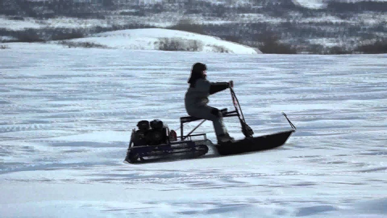 Катания на мотобуксировщике по насту