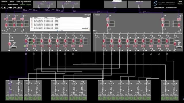АСУ ТП выполняет следующие функции: Мониторинг наличия фазных токов и тока в линии; - Отображение показаний счетчиков коммерческого, технического учета и напряжений; - Мониторинг состояний заземления и замыкания на землю, а так же положения вакуумных выключателей и состояния предохранителей; - Мониторинг состояния газовой и тепловой защиты трансформаторов; - Возможность работы в беззвучном режиме; - Тренды; - Выдача аварийных сообщений; - Запись аварийных сообщений и предупреждений, возникающих в системе с фиксацией времени события; - Ведение отчетов с сохранением на сервере и возможностью просмотра журнала в режиме реального времени.