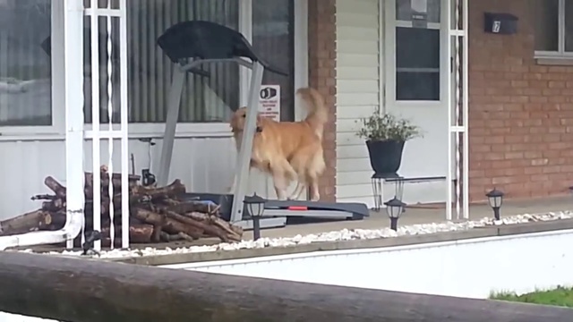Собака бежит по беговой дорожке вызывая удивление очевидцев. #собака #прикол #забавно