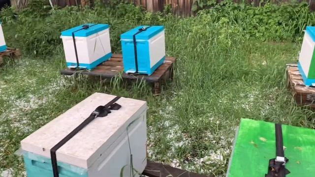 Последствия града, побито все... помята машина...