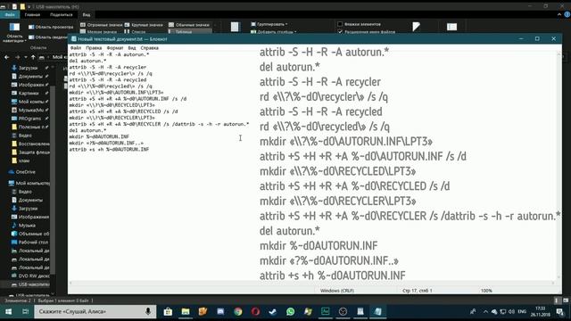 Всем привет. Сегодня продемонстрирую вам способ обезопасить ваши флеш накопители от изменения и повреждения вирусами,без каких либо программ,легко и быстро. mkdir «\\?\%~d0\autorun.inf\LPT3» означает: mkdir — команда создать директорию. \\?\ — это как раз то, что помогает создать папку с зарезервированным системным именем. %~d0\ — обозначение конкретной директории. Если указать вместо этого f:\, то можно будет скрипт запускать хоть откуда, он на диске f: создаст. autorun.inf и LPT3 — имена каталогов, которые будут созданы. Если захотите удалить, выполните в командной строке: rmdir \\?\f:\autorun.inf\, где f: — это диск, с которого удаляем папку «autorun.inf». Команда attrib добавляет следующие атрибуты этим папкам: системный, скрытый, только для чтения, архивный. P.S.Я не заметил что создал файл autorun с двумя точками "..",точка должна быть одна.