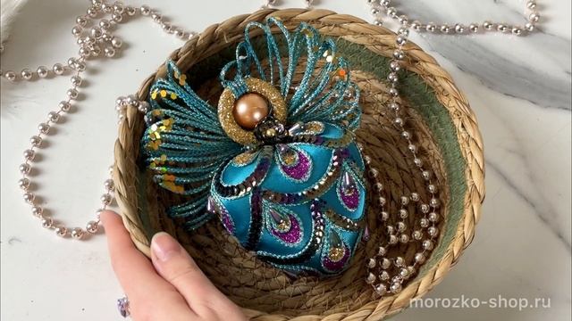 Ёлочная игрушка СЕРДЦЕ ПАВЛИНА, текстиль, пластик, 17 см, S4464-2