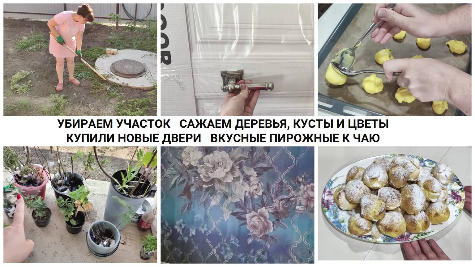 УБИРАЕМ УЧАСТОК САЖАЕМ ДЕРЕВЬЯ, КУСТЫ И ЦВЕТЫ КУПИЛИ НОВЫЕ ДВЕРИ ВКУСНЫЕ ПИРОЖНЫЕ К ЧАЮ