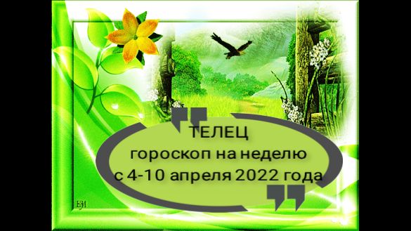 телец гороскоп на неделю с 4 по 10 апреля 2022 года.