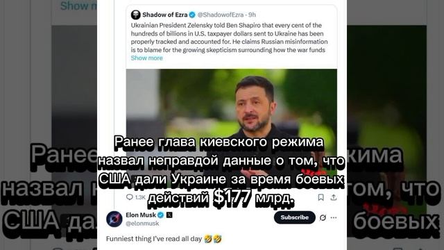 Маска рассмешили слова Зеленского, что «каждый цент» военной помощи США был «должным образом учтён»