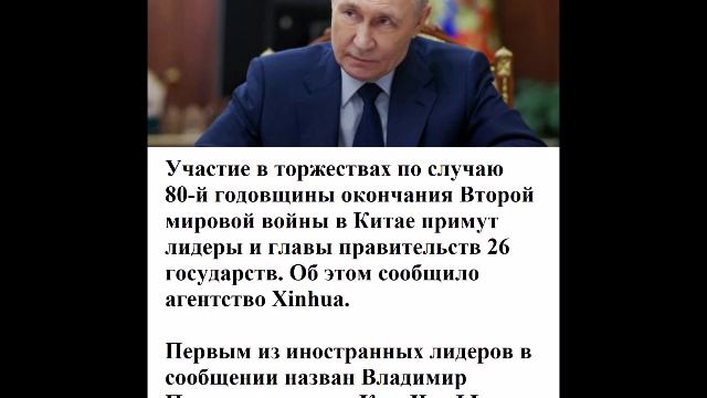 Участие в торжествах по случаю 80-й годовщины окончания Второй мировой войны в Китае примут лидеры и главы правительств 26 государств