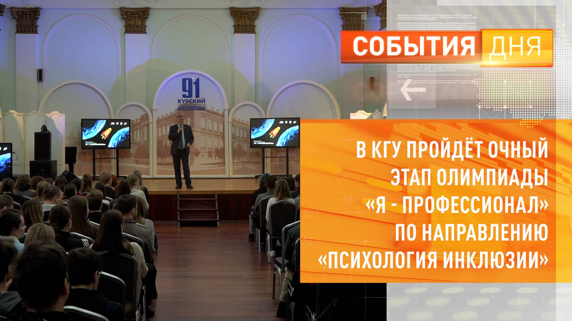 Завершается регистрация участников IX-го сезона Всероссийской олимпиады студентов «Я — профессионал». В этом году площадками для проведения олимпиады станут порядка 40 вузов страны. В их числе и Курский государственный университет. Здесь пройдут очные состязания по новому для проекта направлению — «Психология инклюзии».