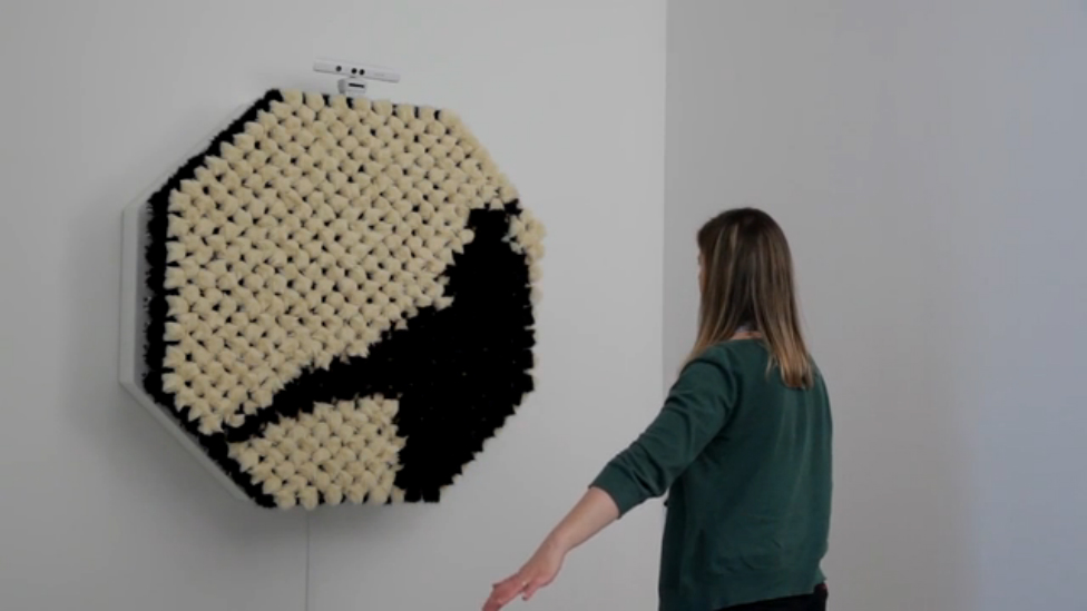 Даниель Розин взял 928 меховых помпона, 464 моторчика, добавил электроники, придумал несложную программу и получилось меховое зеркало «PomPom Mirror» размером 120х120 см.