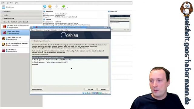 So installiert Ihr Debian 10 in VirtualBox als minimale Servervariante und mit statischer IP. PS Nicht wundern: Ein ähnliches Video (https://goos-habermann.de/weisheit-10002-AlmaLinux-Minimalen-Server-mit-statischer-IP-aufsetzen), wie Ihr dassselbe unter AlmaLinux macht, gab es vorher schon. * Folien, Skripte, etc.: https://goos-habermann.de/weisheit-10009-Debian-10-Minimalen-Server-mit-statischer-IP-aufsetzen -= Mehr zu "Nicht der Weisheit letzter Schluß" =- Projektseite: https://weisheit.goos-habermann.de YouTube: https://www.youtube.com/channel/UCNDn2bb2AHVCliErAwA-45g PeerTube: https://devtube.dev-wiki.de/video-channels/nicht_der_weisheit_letzter_schluss -= Mehr zu mir woanders =- Dienstleistungen: https://goos-habermann.de Softwareverteilungssystem m23: https://m23.goos-habermann.de und http://m23.sf.net Kurzanleitungen und Howtos: https://goos-habermann.de/kurzanleitungen Freie Projekte "Dodger Tools": http://dodger-tools.sf.net Kieler Open Source und Linux Tage: https://www.kielux.de Jean und Hauke Show: https://youtube.com/channel/UCHZyqB9qHGGGw5QeRVEbQDg