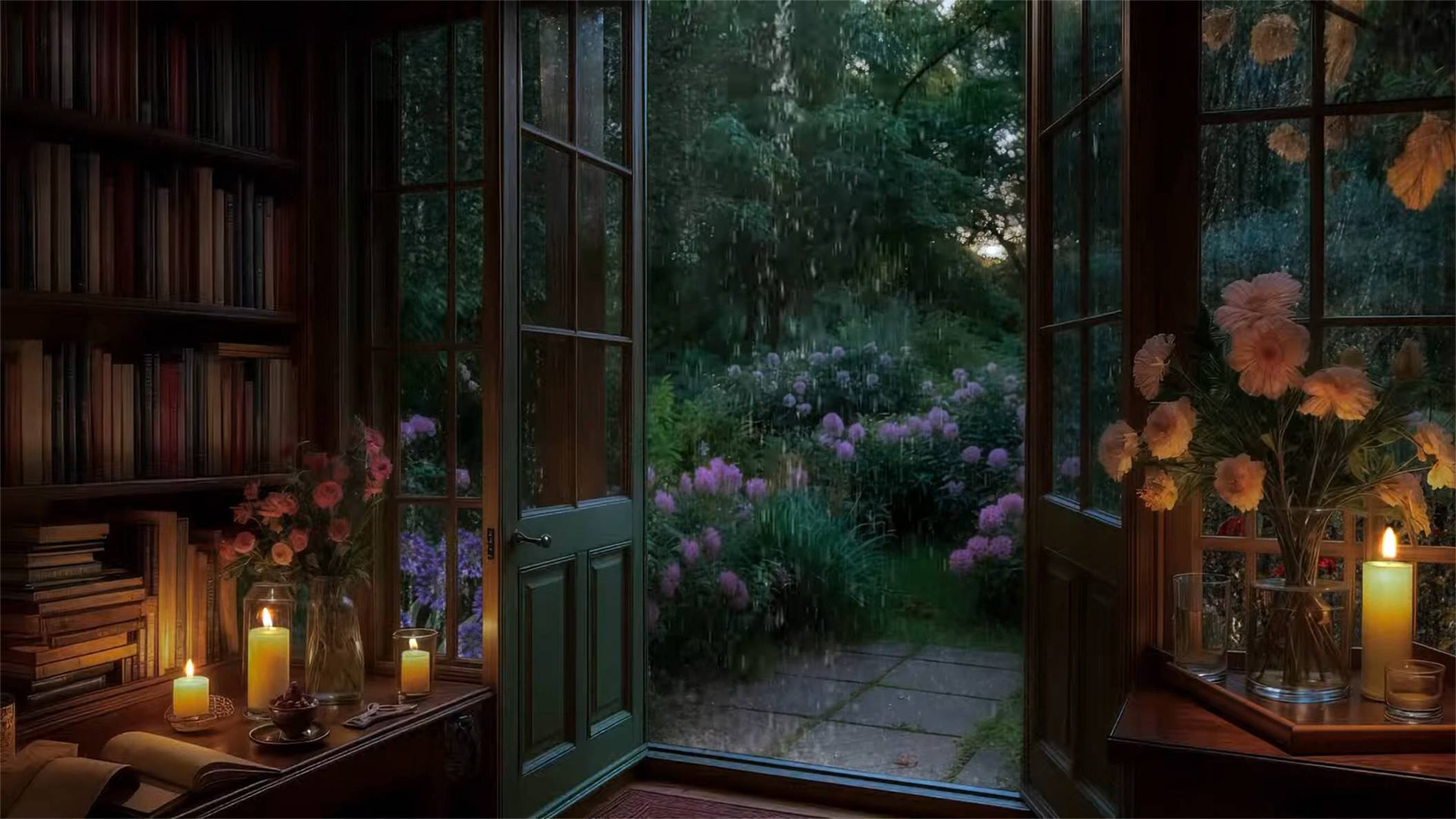 Представьте, как вы сидите в домашней библиотеке с зажжёнными свечами, слушаете мягкий стук дождя и смотрите в сад, утопающий в зелени и цветах. Атмосфера уюта и спокойствия помогает расслабиться, избавиться от лишних мыслей и настроиться на крепкий сон. Это видео идеально для медитации, релакса и отдыха души. #Дождь #ЗвукиДождя #Сон #ДляСна #Релакс #Расслабление #Уют #Природа #Камин #Свечи #ASMR #ШумДождя #Тишина #Спокойствие #Сад