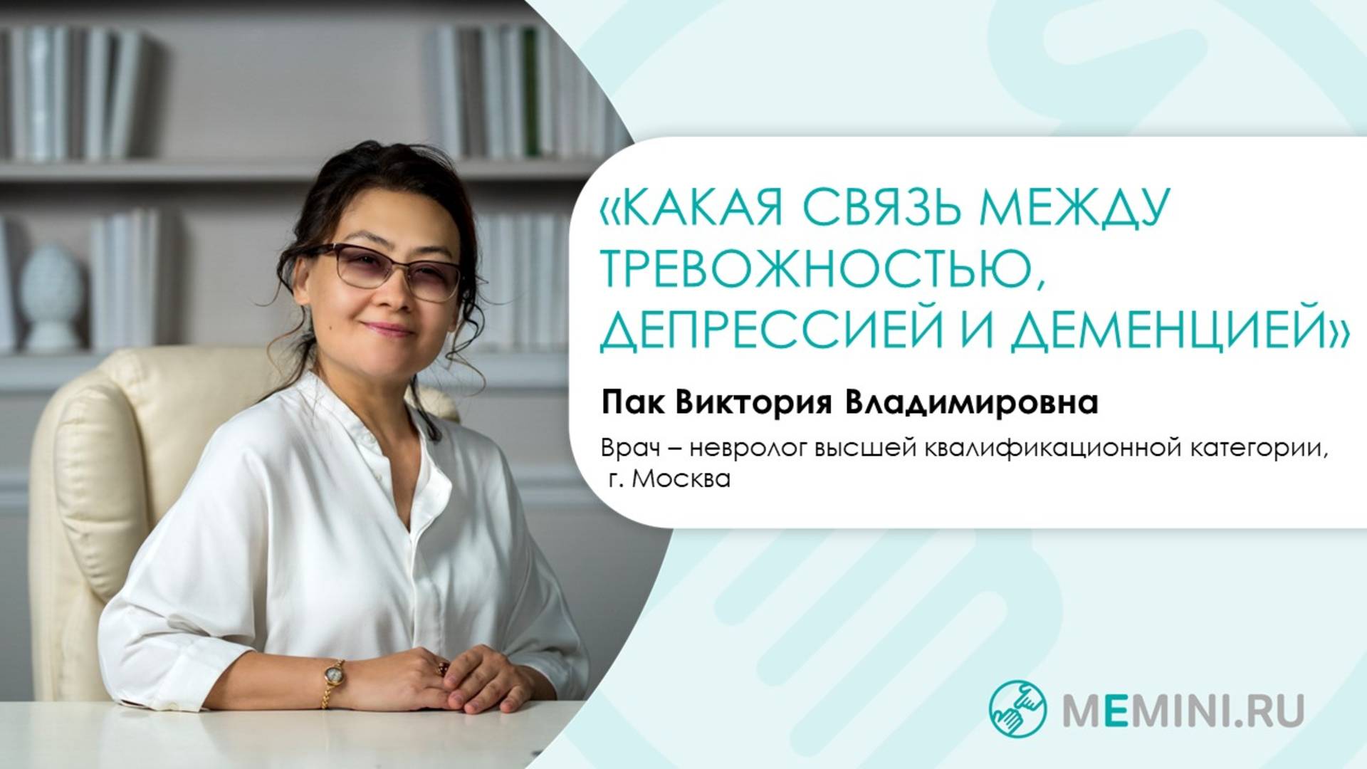 Тревожность и депрессия могу коснуться каждого, и если не лечить эти состояния, то они могут стать причинами деменции. Как выглядят симптомы депресии, как справиться с тревожностью, об этом и не только расскажет в видео врач-невролог высшей квалификационной категории Пак Виктория Владимировна, г.Москва #деменция #болезньАльцгеймера #Альцгеймер #депрессия #тревожность #причиныдеменции Еще больше информации на нашем сайте и в социальных сетях проекта: Сайт https://memini.ru/ ВКонтакте https://vk.com/meminiru Одноклассники https://ok.ru/memini.vse Телеграм https://t.me/meminiru Яндекс.Дзен https://dzen.ru/id/615c01ca1471f557c1f24e19