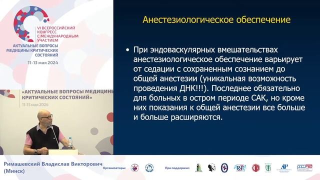 Анестезия в эндоваскулярной нейрохирургии Лубнин А.Ю. СПб 2024