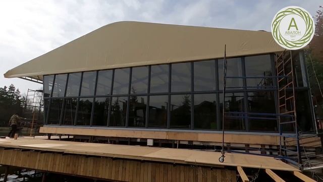 Тентовый модуль 225 м2 - имеет наклонную стену с панорамным остеклением по периметру!
