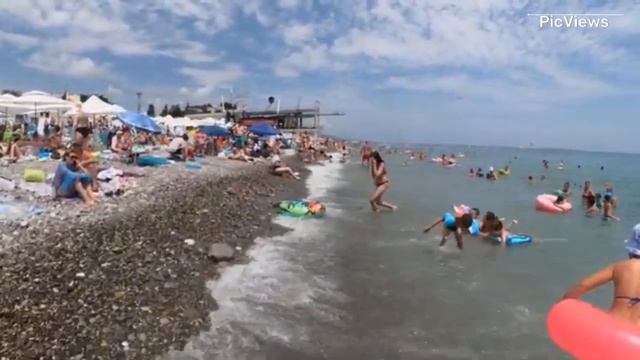 Сочи Лазаревское пляж Взморье сегодня 22 июля 2024. Обстановка на пляже море и погода сейчас