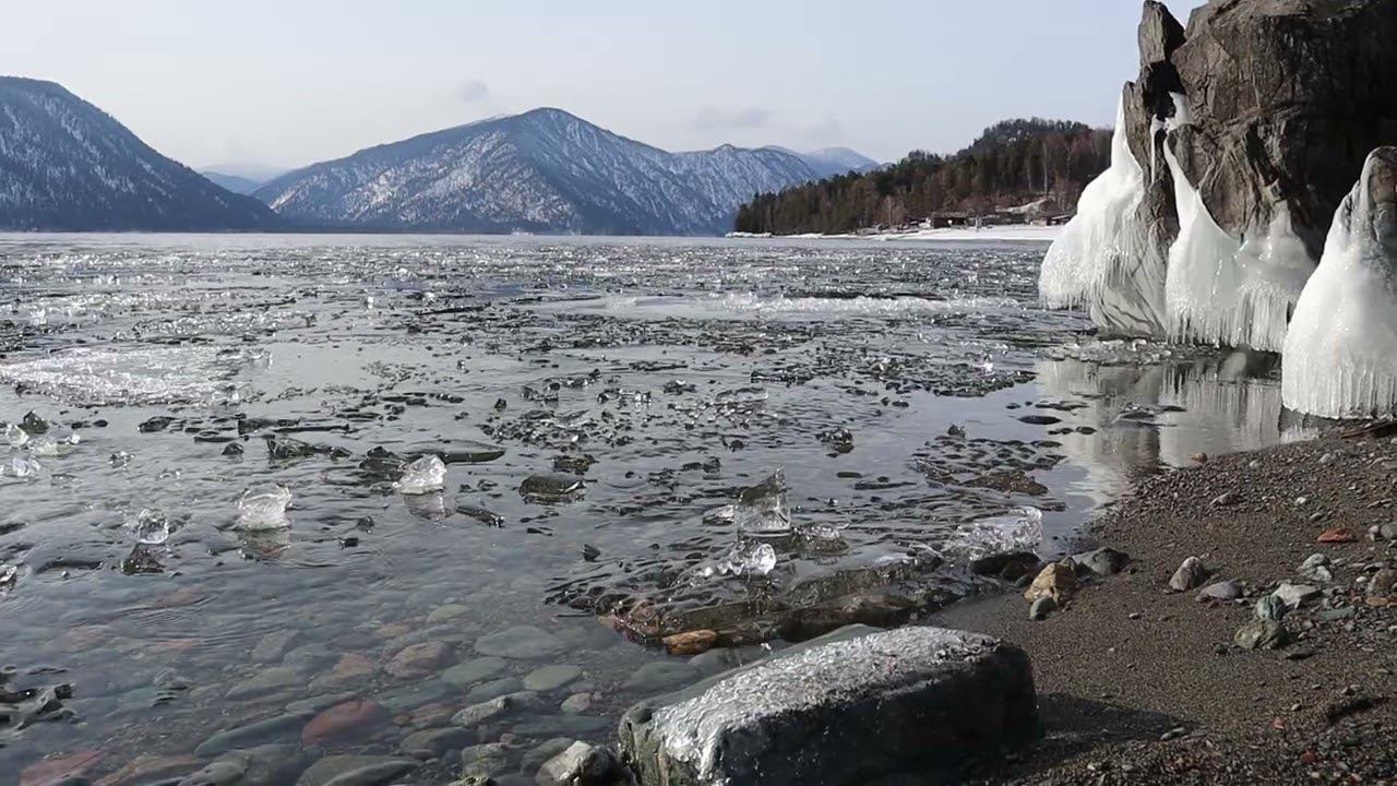 В этом году Телецкое озеро в районе Яйлю так и не замёрзло, но периодически пыталось, оставляя после таких попыток на воде озера поля разбитых и перемешанных льдинок. Автор видео - Евгений Веселовский