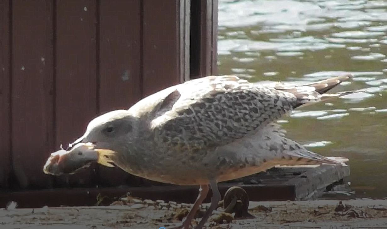 слеток чайки клюёт карася, Парк Луговой, Великий Новгород 21.07.2022