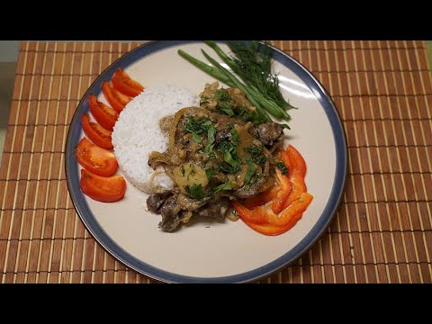 Куриная печень с яблоками.