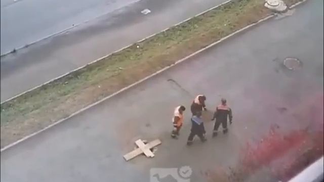 В Челябинске коммунальщики открытый колодец закрыли деревянным крестом. На все воля божья...