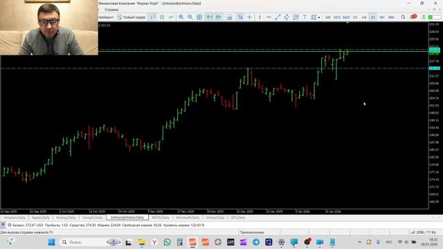 Трейдинг и инвестиции Обзор рынка акций 26-01-2026 AMZN AAPL BA GOOGL JNJ META MSFT NVIDIA SPY