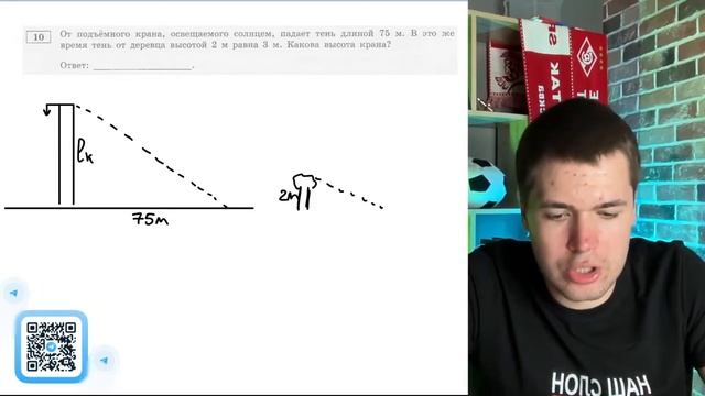 От подъёмного крана, освещаемого солнцем, падает тень длиной 75 м. В это же время тень - №20164