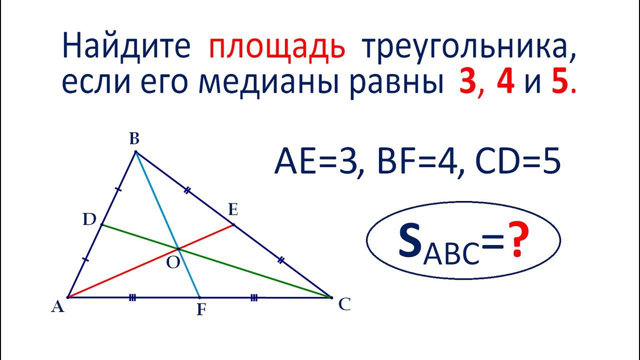 Найдите площадь треугольника, если его медианы равны 3, 4 и 5