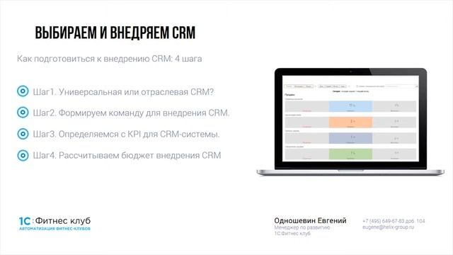 1С:Фитнес клуб на Global Fitness Russia 2019: Нижний Новгород, 23 марта Спикер: Евгений Одношевин, старший менеджер отдела продаж направлений Фитнес и SPA Из доклада вы узнаете: * Что такое CRM: ликбез для начинающих * Как подготовиться к внедрению CRM: 4 шага Шаг1. Универсальная или отраслевая система — что выбрать? Шаг2. Формируем команду для внедрения CRM Шаг3. Определяемся с KPI для CRM-системы Шаг4. Рассчитываем бюджет внедрения CRM Бесплатный бонус - расширенная презентация: https://vk.cc/9dNfyV Подробнее о CRM 1C:Фитнес клуб на нашем сайте: https://vk.cc/9cNDbB