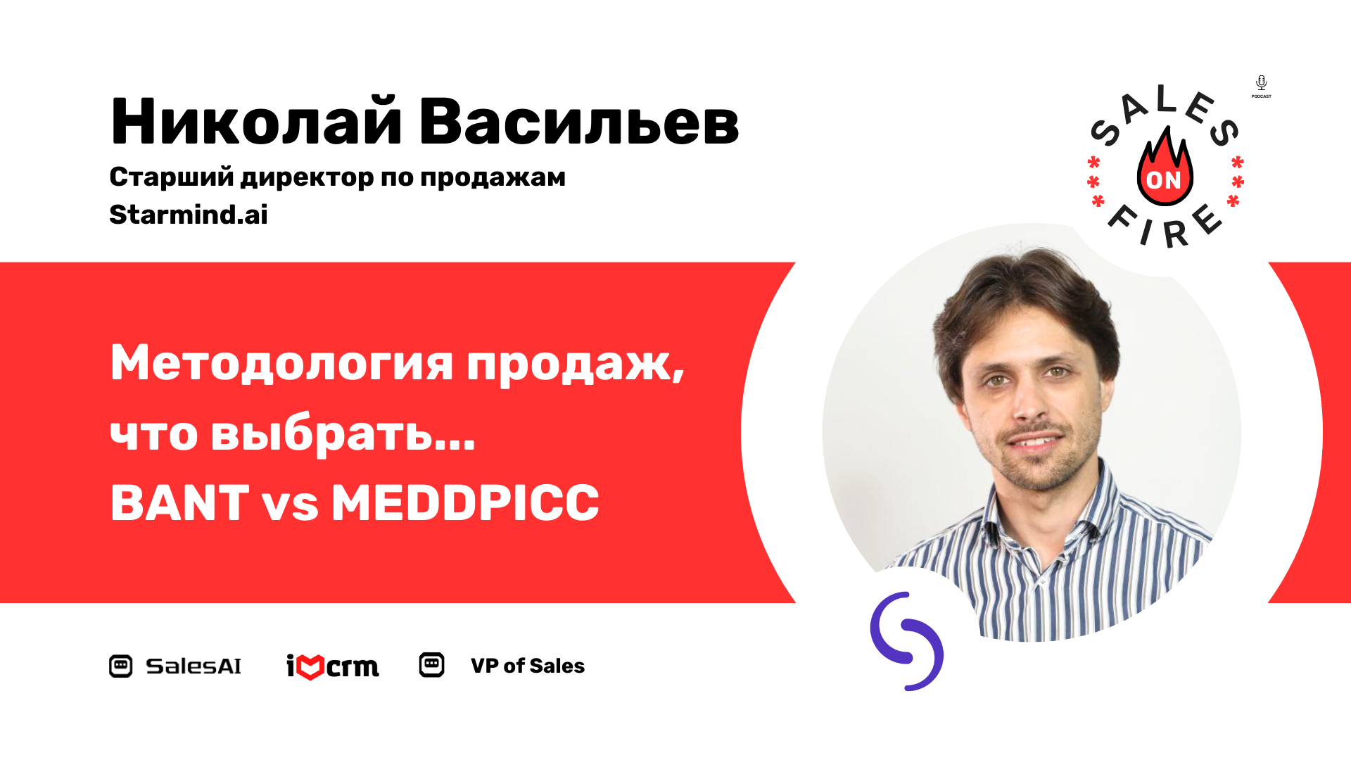 Методология продаж, что выбрать: BANT vs MEDDPICC / Николай Васильев Как правильно выбрать методологию продаж: Solution Selling, BANT, MEDDPICC или что-то еще? От чего зависит выбор: средний чек, цикл сделки или другие факторы? Осознанность в наше время это большой дефицит. Время - самый ограниченный ресурс у человека и самый дорогой для любого менеджера по продажам. Do less- make more - тренд 2023-2025. Как экономить время каждого менеджера по продажам и повышать его конверсию, - рассказывает Николай. Николай Васильев Senior Sales Director в компании Starmind. https://bit.ly/3Kna2Z4 Николай возглавлял отделы продаж в компаниях таких компаниях, как Veeam Software, Промт, Центр Речевых Технологий. Особое внимание на построение команды: показатели, эффективность, мотивация. В данный момент руководит продажами с фокусом на сегмент Enterprise по всему миру (офисы в Испании и США) Если вы посмотрите или послушаете этот выпуск подкаста, то узнаете про: 1. Что такое продажи на самом деле. 2. Куда уходит время сейлов и как его вернуть. 3. Что такое MEDDPICC. 4. Что такое BANT. 5. Лучшая методология продаж для консультационных продаж. 6. Как найти мотивацию клиента решить проблему. 7. На чем спотыкается процесс продаж. 8. На каких рынках и в каких кейсах самый лучший вариант использования MEDDPICC. 9. Кто такой Sales Engineer. 10. БАНТ или не БАНТ? - вот в чем вопрос! и тд ---- Ведущие подкаста: Роман Магдаленко и Антон Борода. Партнеры выпуска: * SalesAI — Автоматическая квалификация лида, контроль качества звонков и заполнение CRM с помощью ИИ. https://salesai.ru * VP of Sales — Канал про Data Driven продажи. https://t.me/vpofsales * #IloveCRM — Все, что вы хотели знать про CRM, но стеснялись спросить. https://t.me/ilovecrm ---- #Podcast #Подкаст #ПродаживОгне #SalesOnFire #Sales #Marketing #Продажи #Маркетинг #b2b #лидерство