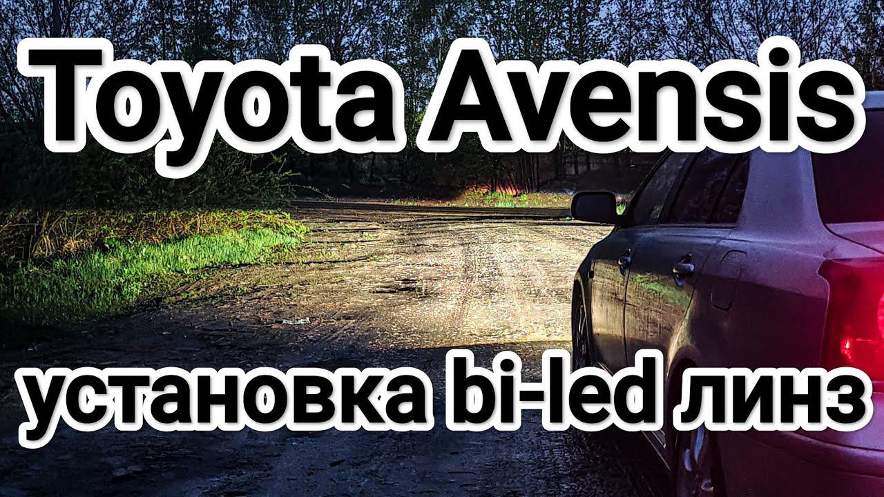 Toyota Avensis 2 2003-2006 установка диодных би лед линз в фары.
