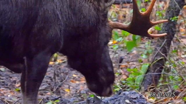 2025/10/28: Лось-5-летка в лесу за ГК №9 на пересечении лесной дороги и ручья ок 15.59