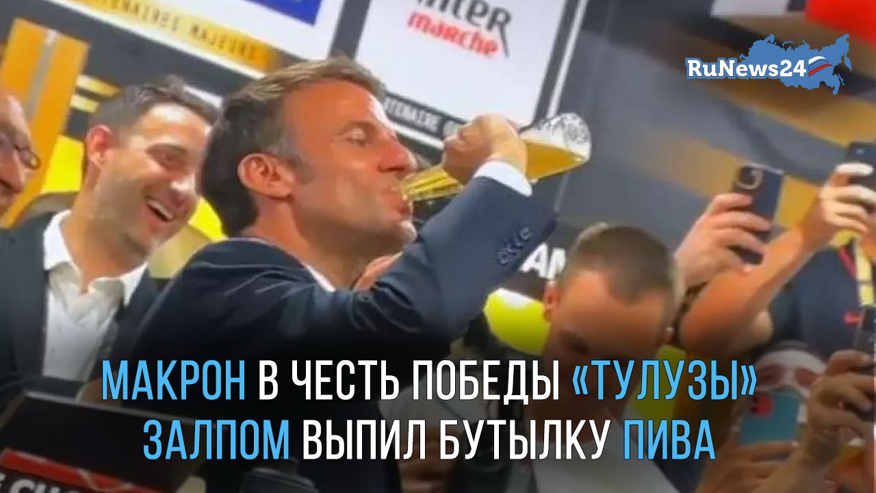 Президент Франции Эммануэль Макрон отметил победу команды «Тулуза» в Чемпионате Франции по регби, выпив залпом бутылку пива в раздевалке команды. На поступок президента бурно отреагировали все присутствующие в раздевалке — кричали и аплодировали. Многие снимали Макрона на телефон. Президент также пошел в раздевалку к проигравшей команде, чтобы утешить их после поражения. #макрон #регби #алкоголь