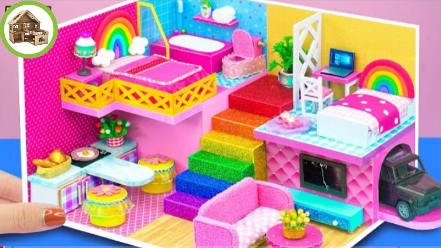 Шикарный Миниатюрный домик с двумя спальнями, пятью комнатами и гаражом на двоих из картона /276