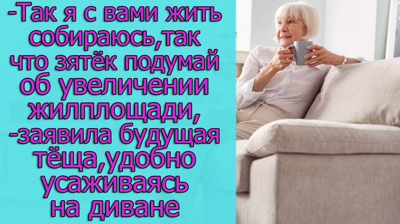 - Так я с вами жить собираюсь, так что зятек подумай об увеличении жилплощади,- заявила будущая теща