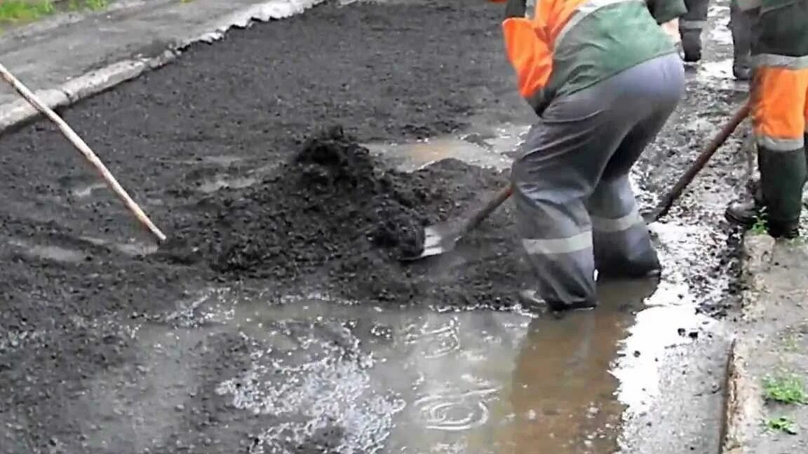 Укладывать асфальт под проливным дождём-это по нашему...
