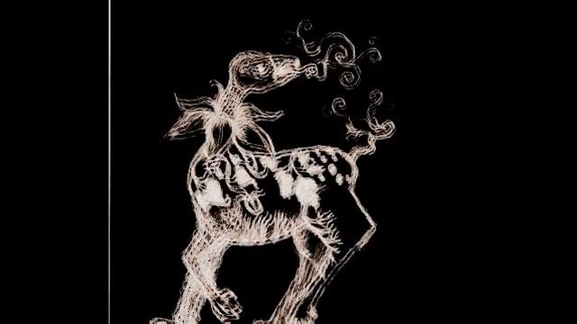 This is an "impromptu monster" that I drew in ballpoint pen. I started with the eye, and gradually built outward from there. I scanned each stage of the picture on an HP Scanjet G3110 (using the VueScan driver) as "line art" Then, inverted the images. I composed the music for it on NoteWorthy Composer (key: C Dorian, 4/4 time; Midi instrumentation: Pad2 (warm))