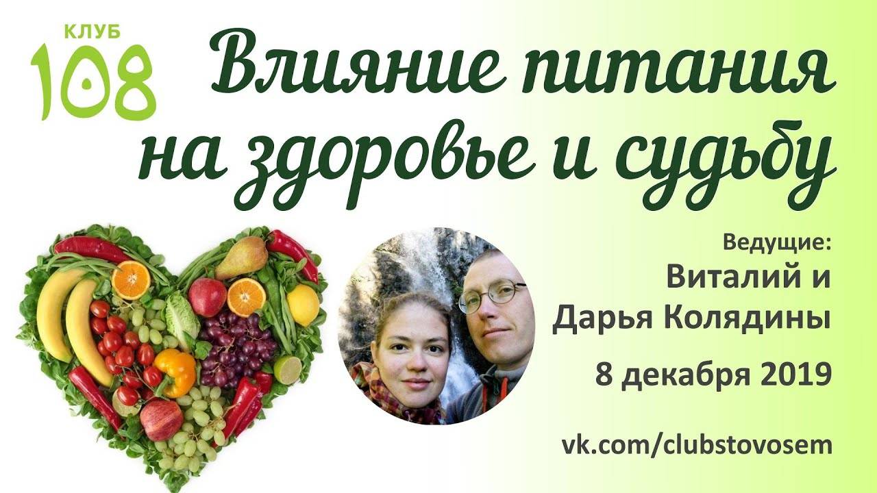 Влияние питания на здоровье и судьбу. Виталий и Дарья Колядины. 2019.12.08. Клуб 108. Череповец