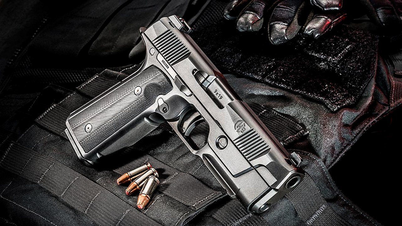 Главный редактор журнала «КАЛАШНИКОВ» Михаил Дегтярёв знакомится с американским пистолетом Hudson H9.